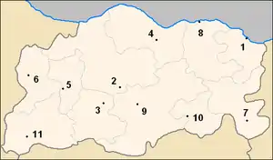 L'oblast regroupe 11 municipalités (en bulgare, община – obchtina – au singulier, Общини – obchtini – au pluriel), au sein desquelles chaque ville et village conserve une personnalité propre, même si une intercommunalité semble avoir existé dès le milieu du XIXe siècle :