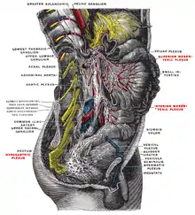 - le plexus cœliaque appelé aussi plexus solaire ;