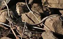 Le Lézard des murailles (Podarcis muralis) est une espèce de Lacertilia (parfois nommés Sauria) de la famille des Lacertidae[1]. Ce petit lézard est originaire d'Europe continentale, plus précisément des régions italiennes et balkaniques[2]. Il est largement présent dans tous les pays d'Europe méditerranéenne ou limitrophes, mais pas dans les îles de Méditerranée. Il a été introduit en Amérique du Nord et en Angleterre[3].