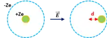Un raisonnement théorique a été fait, basé sur une estimation du déplacement du noyau de charge par rapport aux nuages électroniques assimilant l’atome à une sphère de densité de charge constante. En appliquant le théorème de Gauss à une sphère de rayon d :