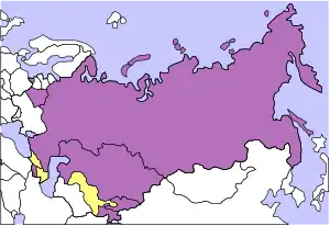 Les plus grandes diasporas russes vivent dans les anciens États soviétiques, comme l'Ukraine (environ 8 millions), le Kazakhstan (environ 4 millions), la Biélorussie (environ 1 million), l'Ouzbékistan (environ 700 000), la Lettonie (environ 700 000), le Kirghizistan (environ 600 000) et la Moldavie (environ 500 000). En Biélorussie, au Kazakhstan et au Kirghizistan, la langue russe est l'une des langues officielles. Enfin, le russe est encore très présent dans d'autres pays de l'ancien bloc soviétique comme l'Arménie.