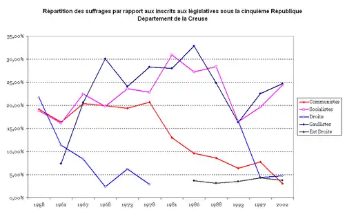 Les meilleurs indicateurs pour apprécier les évolutions de l'électorat creusois sont les résultats aux élections législatives. De profondes modifications interviennent en 1945. Le centre de gravité de cet électorat, se déplace fortement vers la gauche. Le poids du vote communiste est multiplié par plus de deux par rapport à 1936. Mais il convient d'observer les changements pour chaque famille politique, car elles sont toutes impactées.