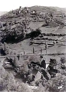 À la suite de Numa Autigeon, en 1904, Joseph Bouscary de l'Espinasse fut élu maire. Il fut celui qui resta le plus longtemps en exercice puisque son dernier mandat s'acheva en 1938. Durant cette période, furent construits le pont des Gandalgues en 1911, le lavoir en 1924 et en 1933 le chemin qui part de la croix du Tioulas jusqu'au bas du bourg de Pomayrols. En 1929, à l'initiative de M. Bousquet, meunier au hameau de la Tourre, aidé de la main d'œuvre locale, le premier réseau électrique alimentant le bourg de Pomayrols fut installé. La production se faisait la nuit, elle fut utilisée jusqu'en 1955 date à laquelle le bourg fut relié au réseau EDF. Dans ce domaine également, dès 1923, la vallée du Lot est prospectée, pour y implanter une usine électrique. Trois sites furent retenus : sous le hameau de la Romiguière, à Chipole et sous La Boulesq... Ces études restèrent sans suites. À partir de 1944, lors des grands projets de barrages hydroélectriques[24] sur le Lot, une retenue située à 3 km en amont de Saint-Geniez-d'Olt fut envisagée, des acquisitions foncières furent réalisées (43 hectares) mais ce projet fut finalement abandonné car les particularités géologiques du sous-sol ne permettaient pas un ancrage fiable de l'ouvrage. Ce ne fut pas le cas pour les sites de Castelnau-Lassouts et de Golinhac où les conditions favorables permirent l'édification des ouvrages.