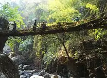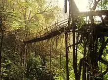 L'exemple le plus long connu de pont de racines vivant[13], long de plus de 50 m, se trouve près de la petite ville de Khasi de Pynursla, en Inde. On peut y accéder depuis les villages de Mawkyrnot ou de Rangthylliang.
