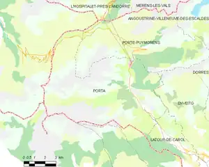 La commune se compose d’un village bourg, Porta, de deux hameaux, Carol et Courbassil, et d’un territoire situé en zone frontalière près du Pas de la Case, en Andorre.