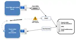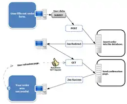 Lorsqu'un formulaire web est soumis à un serveur à travers une requête HTTP POST, un internaute rafraîchissant la réponse du serveur peut provoquer la réémission de la requête HTTP POST originale, pouvant provoquer des résultats indésirables, comme la répétition d'un achat. Certains navigateurs affichent un message d'avertissement avant le ré-envoi du formulaire, mais rien n'empêche celle-ci d'avoir quand même lieu.