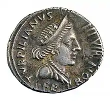Feronia est une déesse sabine[78]. D'après Georges Dumézil, pour qui son correspondant dans la religion védique est Rudra, le maître des animaux, le nom de Fērōnǐa est issu d'un adjectif *fēro-, dialectal ou sabin, apparenté au latin ferus, sauvage. "Elle est chargée, écrit-il, de mettre à disposition de l'homme les bonnes, de neutraliser les mauvaises puissances des terres ferae", c'est-à-dire sauvages. C'est une déesse chargée de préserver le caractère sauvage de ses lieux de culte, tout en étant bienveillante envers leurs voisinage[79]. Denys d'Halicarnasse indique qu'on lui donne parfois l'épithète d'Anthéphore (porte-fleur), de Philostéphane (qui aime les couronnes) et qu'on la rapproche de Perséphone[80].
