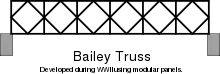 Le pont Bailey a été mis au point par Donald Bailey en . Le premier pont a été mis en place en Italie en 1943. Sa conception modulaire lui permet de s'adapter à de nombreuses contraintes de site.