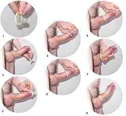 Les différents modes d'échec entraînent différents niveaux d'exposition au sperme. Les risques sont différents pour les rapports vaginaux ou anaux. Un certain nombre d'études donnent une idée de l'efficacité du préservatif quand il est correctement employé. Il convient alors de distinguer suivant l'effet principal mesuré : contraception ou protection contre les infections sexuellement transmissibles, et notamment le SIDA. Des études ont montré qu'une part non négligeable de l'inefficacité occasionnelle du préservatif provient souvent d'une mauvaise éducation quant à son usage[43],[44]. Le principal problème reste essentiellement celui d'une mauvaise pose du préservatif et d'une mauvaise connaissance du dispositif.