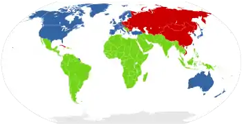 Le nombre de pays faisant partie de ces deux blocs n’étant pas fixé de manière précise, on s’est finalement aperçu qu’un grand nombre de pays ne rentraient dans aucune de ces deux catégories et, en 1952 le démographe français Alfred Sauvy a inventé le terme de « tiers monde » pour désigner ces pays. Rétrospectivement, les deux premiers groupes ont par la suite été appelés[réf. nécessaire] « premier monde » et « second monde ».