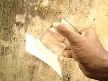 - Feuille de papier cartonnée (carte de visite, carte postale), essuie-tout… L'expérience marche aussi avec une gaze, une toile métallique ou une passoire qui font intervenir plus intensément un autre phénomène physique, la tension superficielle, laquelle explique que l'expérience ne « marche » pas avec du papier plastifié ou graissé avec un peu d'huile.