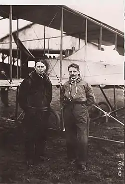 Léon et Robert Morane au décollage pour leur tentative.
