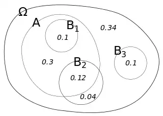 La définition de la probabilité conditionnelle peut aussi être obtenue d'un point de vue fréquentiste[5][réf. à confirmer]. En effet, la probabilité d’un événement est définie (selon ce point de vue) comme la fréquence limite d’observation de cet évènement. On répète l’expérience aléatoire fois, avec un entier très grand. On observe que l’événement s’est réalisé fois. Ainsi, on a . On compte aussi, parmi les tirages où s’est réalisé exclusivement, le nombre de fois que l'événement s’est réalisé. On note l’entier obtenu. Par conséquent, on a . Aussi, . On remarque que .