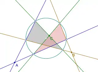 « Étant donné un cercle et trois points A, B et C, construire à la règle et au compas un triangle inscrit dans le cercle et dont les côtés passent respectivement par les points A, B et C. »