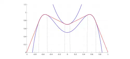 Proposition — Soit la tangente à au point d'abscisse telle que . Soit la tangente à au point d'abscisse telle que . Définissons deux fonctions dans :