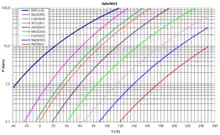 La figure ci-contre présente, dans le diagramme de Clausius-Clapeyron, les courbes d'équilibre de quelques chlorures ammoniacates réagissant avec l'ammoniac. L’équilibre liquide-vapeur de l’ammoniac est également représenté sur ce diagramme : c’est la courbe d’équilibre située le plus à gauche.