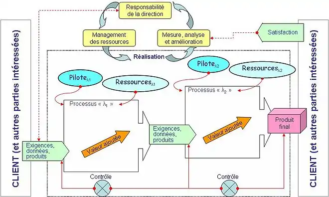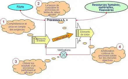 Un processus est un ensemble d'activités corrélées ou en interaction qui utilise des éléments d'entrée pour produire un résultat escompté, selon la norme ISO 9000:2015[1].
