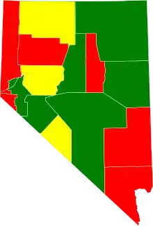 Le Nevada est composé de 16 comtés et sept d'entre eux comportent des bordels actifs (ce sont tous des comtés ruraux). En , 21 bordels légaux sont en activité[21]. Les conditions exactes d'octroi d'une licence, ainsi que son prix, varient selon les comtés.