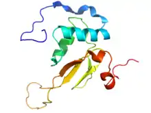 Le noyau est la région la plus structurée de la protéine : elle est formée de 4 brins β antiparallèles entourés de 4 hélices α (2 longues hélices antiparallèles en position N-teminale – 2 courtes en position C terminales. De plus, le noyau possède une séquence riche en proline (type PxxPxxP entre les a.a 69 et 78) qui adopte une structure hélioïdale gauche « polyproline »[3]. Toutes ces structures secondaires s’agencent de façon à former une poche hydrophobe au centre du noyau.