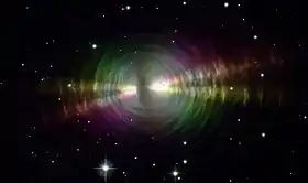 Ce stade intermédiaire survient lorsqu'une étoile a consommé la totalité de son hydrogène et s'attaque alors à l'hélium. Cela provoque la libération d'un nuage de gaz excité par le rayonnement de l'étoile[6]. Une protonébuleuse planétaire est une sorte de nébuleuse par réflexion dont l'étoile est généralement entourée d'un épais disque de poussière[7],[8],[9].