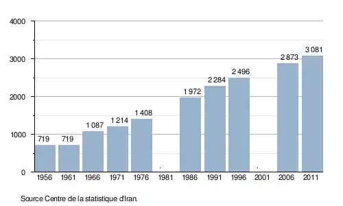 f. 1986 à 2011 par Law (2015) à partir de Iran Almanac, 1978 (1976); Fourth United Nations Conference on the Standardization of Geographical Names, volume II, 1987 (1986); The Stateman's Year-Book, 1997-1998 (1991 et 1996); (en) Statistical Center of Iran, National Population and Housing Census 2011 (1390) : Selected Findings, Téhéran, The President's Office, Deputy of Strategic Planning and Control, , 32 p. (lire en ligne) (2006 et 2011). - (en) « Iranian Peoples : Kurdish Tribes », sur cais-soas.com (consulté le ).