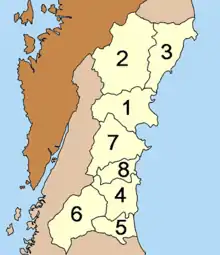 Chumphon est subdivisée en 8 districts (amphoe) : Ces districts sont eux-mêmes subdivisés en 70 sous-districts (tambon) et 674 villages (muban).