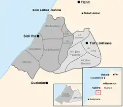 - anciennes tribus du Leff du Tahggat, partiellement présentes au nord du cercle de Sidi Ifni et au nord-ouest du cercle de Lakhsass :