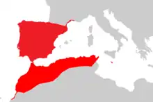 Cette espèce se rencontre dans le sud de la France, en Espagne, au Portugal, à Gibraltar, au Maroc, en Algérie, en Tunisie et aux îles Pélages en Italie[1].