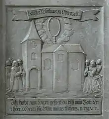 Épitaphe de Lucas Kern dans l'église Saint Paul de Passau, avec mention du verset 7.