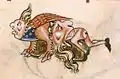 - surtout, chaque bordure de page est décorée : elles contiennent des scènes figurées, de drôleries, ainsi que des dessins héraldiques.