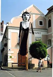 Sorcière géante devant l'hôtel de ville en 2005.