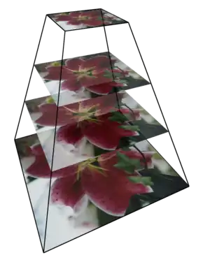 Les pyramides de Laplace sont très similaires aux pyramides de Gauss, mais sont calculées en sauvegardant la différence avec l'image floutée entre chaque niveau. Seul le plus petit niveau n'est pas une différence pour pouvoir reconstruire l'image en haute résolution utilisant les différences entre chaque niveau. Cette technique peut être utilisée en compression d'image[12].