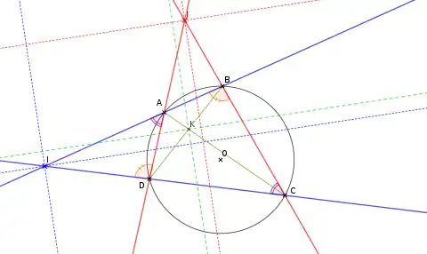 Les angles et sont égaux. Les triangles IAD et ICB sont (inversement) semblables (les angles inscrits et sont supplémentaires - dans la figure ci-dessus - ou égaux).