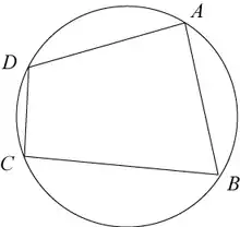 En géométrie, un quadrilatère inscriptible (ou cyclique [1]) est un quadrilatère dont les sommets se trouvent tous sur un seul et même cercle. Les sommets sont dits cocycliques. Le quadrilatère est dit inscrit dans le cercle, et le cercle, circonscrit au quadrilatère.