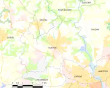 DémographieL'évolution du nombre d'habitants est connue à travers les recensements de la population effectués dans la commune depuis 1793. Pour les communes de moins de 10 000 habitants, une enquête de recensement portant sur toute la population est réalisée tous les cinq ans, les populations légales des années intermédiaires étant quant à elles estimées par interpolation ou extrapolation[49]. Pour la commune, le premier recensement exhaustif entrant dans le cadre du nouveau dispositif a été réalisé en 2005[50]. En 2021, la commune comptait 8 790 habitants[Note 19], en augmentation de 2,11 % par rapport à 2015 (Morbihan : +3,21 %, France hors Mayotte : +1,84 %).Cette commune est réputée pour avoir un nombre de naissances dont le prénom de l'enfant est Kévin largement supérieur à la moyenne du territoire français entre 1992 et 2010[réf. souhaitée]. ÉconomieUne partie de l'aéroport de Lorient Bretagne Sud se trouve sur le terrain de la commune. Langue bretonneYa d'ar brezhonegL’adhésion à la charte Ya d’ar brezhoneg a été votée par le conseil municipal le . La commune a reçu le label de niveau 1 de la charte le puis le label de niveau 2 le . EnseignementÀ la rentrée 2017, 51 élèves étaient scolarisés dans la filière bilingue publique[52]. Culture et patrimoineLieux et monumentsMonuments classés ou inscrits