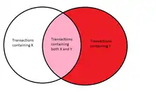 - Le support (« support ») est alors la proportion des transactions de contenant , soit . Celui-ci peut être vu comme une estimation de la probabilité .