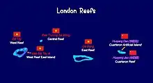 Les quatre principaux éléments dans la zone sont les récifs (London Central (en), Cuarteron, London Est (en) et London Ouest (en)), sont connus par de nombreux noms[1],[2],[3] :