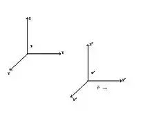 On lui associe souvent un système de coordonnées ayant pour origine le centre de masse du système considéré et un système d'axes colinéaires à ceux du référentiel de référence R. Mais ces choix de centre et d'axes ne sont pas obligatoires.