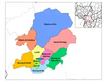 | Départements | Haute-Sanaga Lekié Mbam-et-Inoubou Mbam-et-Kim Méfou-et-Afamba Méfou-et-Akono Mfoundi Nyong-et-Kéllé Nyong-et-Mfoumou Nyong-et-So'o |