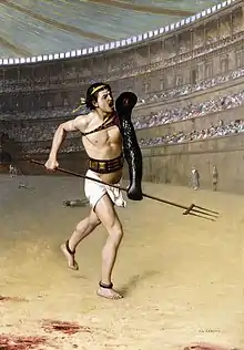Le rétiaire (Prononciation habituelle : [ʀesjε:ʀ]. Étymologie : latin retiarius, littéralement, « combattant au filet ») était un des types de gladiateurs romains. Son armement caractéristique (brassard, filet, trident, poignard) fait du rétiaire un gladiateur atypique.