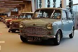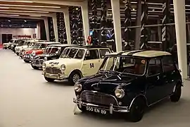 La Mini (3,02 m de long) conçue par Alec Issigonis fête ses 60 ans, et ses 5 millions d'exemplaires vendus en quatre générations, avec notamment un modèle de 1959 du Musée automobile de Beaulieu qui est exposé sur le salon parisien.