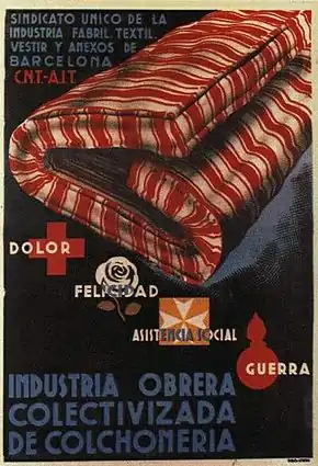 Les syndicats ouvriers de la CNT sont très puissants : ils prennent la gestion de nombreuses usines textiles, des tramways et des autobus de Barcelone, implantent des entreprises collectives dans des domaines aussi variés que la pêche, la fabrication des chaussures, les spectacles publics, et même les petits commerces[réf. nécessaire]. En quelques jours, ce sont 70 % des entreprises et des commerces qui passent sous le contrôle des travailleurs[réf. nécessaire]. Ce chiffre est d'autant plus remarquable que la Catalogne concentre en 1936 les deux tiers de l'industrie espagnole[réf. nécessaire].