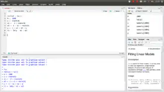 R est un langage de programmation et un logiciel libre destiné aux statistiques et à la science des données soutenu par la R Foundation for Statistical Computing. Il fait partie de la liste des paquets GNU[3] et est écrit en C, Fortran et R.