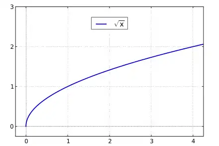 L’application est une bijection de ℝ+ sur ℝ+ dont la réciproque est notée . Cette fonction s’appelle la fonction racine carrée. Géométriquement, on peut affirmer que la racine carrée de l’aire d’un carré du plan euclidien est la longueur de l'un de ses côtés.