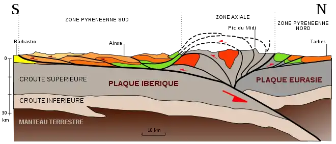 Au cœur des chaînes de collision, la formation de bassins sédimentaires post-épaississement est liée au désépaississement crustal. La racine trop chaude perd sa résistance et s'étale, ce qui entraîne un étirement froid de la croûte supérieure, lequel est à l'origine de l'ouverture de bassins intracontinentaux limités par des failles normales ductiles[9].