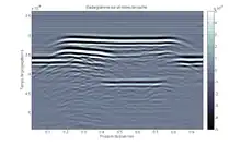 Un radargramme est une représentation graphique de la mesure d'un radar à pénétration de sol ou de matériaux. Il représente généralement en abscisse une longueur correspondant à la distance du linéaire analysé, en ordonnée un temps correspondant au temps de réponse du signal entre son émission et sa réception, et un dégradé de couleur correspondant à l'amplitude du signal.