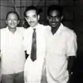 Vernon Corea (en) (à gauche) avec des collèges dans un studio de Radio Ceylon en 1958.