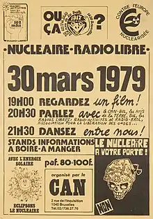 - Il faut rappeler que les radios libres sont nées, en Belgique à la fin des années 70, à l’initiative de groupes anti-nucléaires, de comités de quartier, de contestataires divers. Ainsi, la première radio libre fut créée à Couvin, par opposition à un projet de barrage. Le Réseau libre des Amis de la Terre, les anarchistes du 22 mars, des membres de comités étudiants et des pacifistes sont à l’origine des Radio’z’Alternatives., Les radios associatives et communautaires en Belgique, La Musique adoucit les Mœurs, Radio Activities, 30 ans de radios libres, 2006.