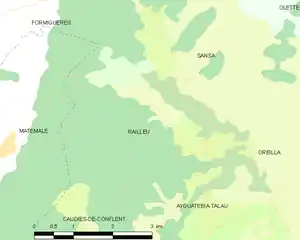 Les communes les plus proches[Note 1] sont[3] : Ayguatébia-Talau (1,5 km), Sansa (1,9 km), Caudiès-de-Conflent (2,7 km), Matemale (5,2 km), Réal (6,3 km), Oreilla (6,6 km), Formiguères (7,3 km), Thuès-Entre-Valls (7,6 km).