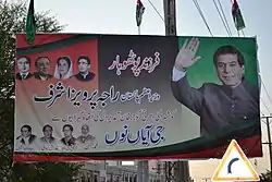 Les élections se sont déroulées à la date prévue, le , mais disqualifié le 16 avril, il ne peut y participer[11]. Le , Raja avait laissé sa place au Premier ministre par intérim Mir Hazar Khan Khoso, nommé par la commission électorale pour le bon déroulement du scrutin.
